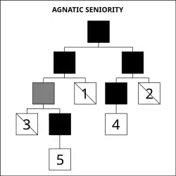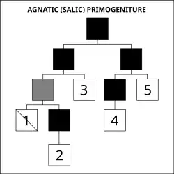 Agnatic-cognatic (or semi-Salic) succession, prevalent in much of Europe since ancient times, is the restriction of succession to those descended from or related to a past or current monarch exclusively through the male line of descent: descendants through females were ineligible to inherit unless no males of the patrilineage remained alive.
