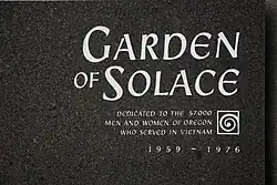 The Oregon Vietnam Veterans Memorial is an 8-acre (0.03 km2) outdoor war memorial dedicated to Oregonians who served in the Vietnam War. It is located in Portland, Oregon's Washington Park at 45°30′43″N 122°43′07″W / 45.5120°N 122.71857°W / 45.5120; -122.71857. The memorial was dedicated in 1987, inspired in 1982 by visits to the national Vietnam Veterans Memorial by five veterans and the parents of a Marine killed in Vietnam.[1] Landscape architecture firm Walker Macy of Portland designed the memorial,[2] while construction labor and materials were almost entirely volunteer donations.The font used in the memorial was created for the exclusive use of the Memorial. It was designed by Janis Price, and is called Hoyt, in recognition of the Arboretum.
