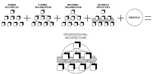 Organizational architecture, also known as organizational design, is a field concerned with the creation of roles, processes, and formal reporting relationships in an organization. It refers to architecture metaphorically, as a structure which fleshes out the organizations. The various features of a business's organizational architecture has to be internally consistent in strategy, architecture and competitive environment.[2]