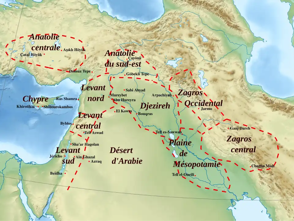- This article is partly or entirely taken from the article named "w:fr:Néolithique du Proche-Orient "