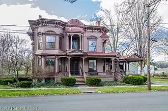 Orrin W. Burritt House is a historic home located at Weedsport in Cayuga County, New York. It is a fashionable Italianate / Queen Anne style dwelling built about 1876. It consists of a large, essentially rectangular, two story frame main block. Notable features of the building include broadly projecting eaves supported by elaborate scroll brackets, dentils and modillions; large windows surrounded by elaborate wood trim; an imposing verandah with a wealth of Victorian-inspired ornamentation; and a Colonial Revival style porte-cochere added about 1912. Also on the property is a carriage house built about 1876.[2]