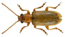 The Orsodacnidae are a small family of leaf beetles, previously included as a subfamily within the Chrysomelidae. It is the smallest of the chrysomeloid families in North America;[1] Oxypeltidae is smaller, with only three species in South America. A fossil species of Aulacoscelis is known from the Early Cretaceous (Aptian-Albian) Santana Group of Brazil.[2]