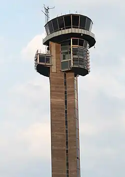 The airport has two parallel runways, aligned 01/19. The west runway 01L/19R is 3,600 by 45 metres (11,811 ft × 148 ft), while the east runway 01R/19L is 2,950 by 45 metres (9,678 ft × 148 ft).[4] The configurations allows 80 air movements per hour.[33] The runways are equipped with CAT IIIA instrument landing system[71] and the airport is supervised by a 91-metre (299 ft) tall control tower.[61] Once departing aircraft are 15 kilometres (9 mi) away from the airport, responsibility is taken over by Oslo Air Traffic Control Center, which supervises the airspace with Haukåsen Radar. The airport has two ground radars, on the far sides of each of the runways. Both at the gates and along the taxiways, there is an automatic system of lights that guide the aircraft. On the tarmac, these are steered by the radar, while they are controlled by motion sensors at the gate.[72]