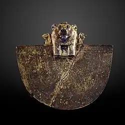 Osorkon IV is attested by Assyrian documents (as Shilkanni and other epithets) and probably also by the Books of Kings (as King So), while Manetho's epitomes list him as the second king of the 23rd Dynasty, Osorkhō, reigning for 8 years between Petoubatēs (Pedubast II) and Psammous (Pami II).[69] He is undoubtedly attested on the well-known Victory Stela of Piye[70] on which he is depicted while prostrating in front of the owner of the stela along with other submitted rulers. Another finding almost certainly referring to him is the aforementioned aegis of Sekhmet, found at Bubastis and mentioning a King Osorkon son of queen Tadibast who–as the name does not coincide with those of any of the other Osorkon kings' mothers–can only be Osorkon IV's mother.[71]