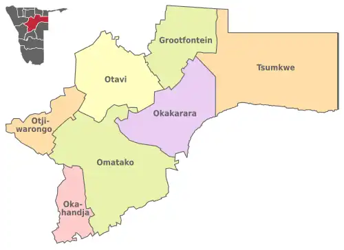 ![]() Location of the Otjozondjupa Region in Namibia | |