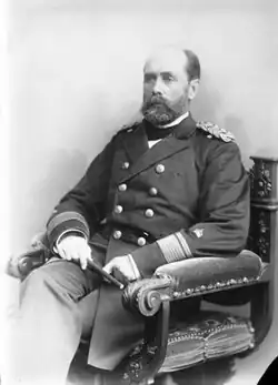 After Naval School graduation at Kiel[4] and Atlantic training voyages on the Prussian sail frigate SMS Niobe, he was commissioned Unterleutnant zur See [Lieutenant JG] in 1867.[5] He served a brief tour aboard the royal yacht SMS Grille. During the Franco-Prussian War of 1870-1871 he commanded the coastal gunboat Natter. Although a French fleet maneuvered in the North Sea where Natter was deployed, "the French battle plan had little impact on Diederichs' wartime service, which proved somewhat anticlimactic".[6] After hostilities ended, his ship was deactivated. From 1871 to 1874, he attended several terms at the postgraduate Naval War College, the German Imperial Naval Academy (Marineakademie), with intermittent training cruises in a class with four future admirals.[7]