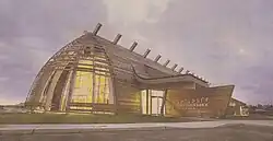 Aanischaaukamikw Cree Cultural Institute[9] opened on November 15, 2011, after 10 years of planning and construction, at a cost of $15 million. The name Aanischaaukamikw (âniscewikamikw in the southern dialect) is equivalent to "heritage centre" (âniscew-, meaning 'ancestry' and -kamikw, meaning "room" or "building") in English. It is a multi-purpose cultural institution for local cultural programs and will adapt and include programs currently provided by the James Bay Cree Cultural Education Centre and the Cree Regional Authority. It will also collaborate on the Cree-language research currently being conducted by the Cree School Board. The Cree community hopes to attract between 10,000 and 20,000 tourists each year. It stands on a semicircular lot in the middle of the village and was designed by Douglas Cardinal of Ottawa and Figurr Architects Collective (formerly Rubin & Rotman Architects) of Montreal. The inside of the building is open to the sky and has a number of features typical of Cree culture. It has become a major tourism destination in the region, with a mission to preserve Cree culture and tell visitors about Cree history, culture, and vision. Discussions are currently underway about hotel construction nearby as a way to continue this project and continue to promote Cree and northern culture.