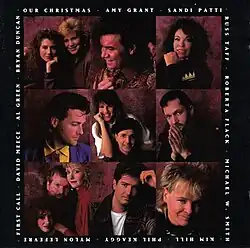 Our Christmas is a 1990 compilation Christmas album released jointly on Reunion Records and Word Records.[2] This is the second of a three-album trilogy from Word Records using the word "Our" following the release of Our Hymns (1989) and the upcoming Our Family (1992). Like Our Hymns, Our Christmas features Christmas songs done by CCM artists' interpretation and styles of music. Highlights include a duet with Amy Grant and Sandi Patti singing a medley of "It Came Upon the Midnight Clear" and "O Little Town of Bethlehem" and "One Small Child" recorded by David Meece, a song he wrote back in 1971 and has since been covered by many Christian artists including Evie, First Call and Rebecca St. James. Our Christmas peaked at number 3 on the Billboard Top Christian Albums chart.[3]