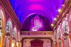 A 29-rank, 2-manual mechanical Hook & Hastings organ, built in Boston, Massachusetts, in 1888, was moved to the church in 1912 from the First Unitarian Church, where it was one of three Hook and Hastings organs known to have survived the 1906 earthquake. It remains in the church in unaltered condition and is designated by the Organ Historical Society.[11][12] It is the largest unaltered 19th-century pipe organ in California.[13]