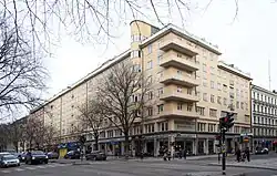 In 1919 the school became official recognised and eligible for state aid.[2] It was the first business school in Sweden to receive this kind of recognition.[1] A new building, designed by the prominent builder Olle Engkvist based on drawings by Mauritz Dahlberg, was built on Sveavägen at nos. 82-88, and the school was relocated there in 1930.[3]