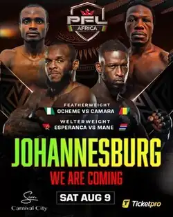2. ^ Anderson, Jay (2025-06-10). "Second PFL Africa Event Set for Johannesburg on August 9". Cageside Press. Retrieved 2025-06-10.