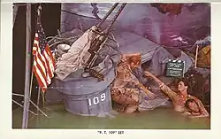 In the film the PT 109 and all other PT boats are painted in the same standard gray paint scheme used by larger warships of the U.S. Navy. Although many Higgins and Elco PT boats were likely delivered from the manufacturer (to be shipped upon oceangoing navy cargo vessels) with such a paint scheme, historical records indicate that PT 109 and the other boats in its squadron were painted dark green once in the Solomons in order to better blend into jungle backdrops at forward operating bases.[12][13]