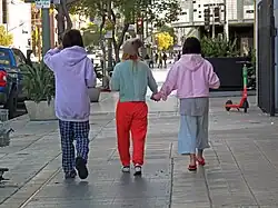 People wearing pajamas on Wilshire Boulevard, Sunday morning