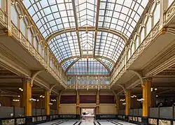 The Palacio de Correos de México (Postal Palace of Mexico City), also known as the "Correo Mayor" (Main Post Office) is located in the historic center of Mexico City, on the Eje Central (Lázaro Cardenas) near the Palacio de Bellas Artes.[1] It was built in 1907, when the Post Office became a separate government entity. Its design and construction was the most modern at the time, including a very eclectic style which mixed several different traditions, mainly Neo-Plateresque, into a very complex design.[2][3] In the 1950s, the building was modified in a way that caused stress and damage, so when the 1985 earthquake struck Mexico City, it was heavily damaged. In the 1990s, restoration work has brought the building back to original construction and appearance.[4]