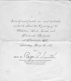 The railroad opened on August 25, 1912 and closed in 1924. Financial mismanagement, the improvement of local roads and the rise of the automobile helped bring down this route. 1920 or 1921 the railroad was reorganized as Chicago, Palatine and Wauconda Railroad Company.
