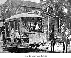 The Palatka and Heights Street Railway was a streetcar system in Palatka, Florida, chartered in March 1888 with a 50-year franchise. It opened in January 1889, with three miles of 3 ft (914 mm) narrow gauge track. In 1904 it is shown as owning two cars and two horses, though common practice in the South was to use mules rather than horses, and pictures in the Florida State Archives show the P&HSRy car pulled by mules.[1]
