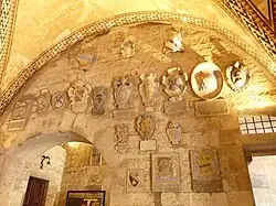 Once the palace housed the local Civic museum and art gallery, but by the 19th century this museum was moved to the present site of Palazzo Minucci-Solaini. The main portal leads to a large atrium in the ground floor. In the stairs leading up to the next story (first floor), is a fresco depicting a Crucifixion with Saints (1490) by Pier Francesco Fiorentino.[4] The first floor houses the Sala del Consiglio (Hall of the council). This large meeting hall is extensively frescoed with heraldic symbols, completed during a restoration in 1881. A large lunette still retains a partially damaged Annunciation (1398) painted by Jacopo di Cione Orcagna. The others were completed in 1881. The lunette to the right depicts a Wedding at Cana (1593) by Donato Mascagni. The upper floors were used as a residence by the magistrates.