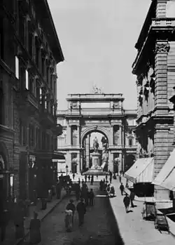 The arch and the monument to Victor Emmanuel II (Florence) seen from Via degli Speziali in the years 1890—1900