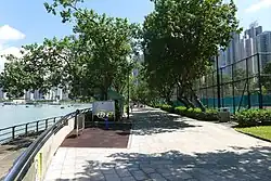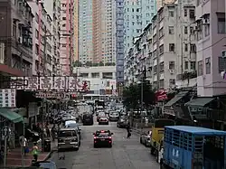 Although the murder occurred on Heung Wo Street in Tsuen Wan, Yung opposed filming on location to avoid bringing back tragic memories for local residents.[19] Instead, he primarily shot the film in To Kwa Wan,[19][5] and used Mei King Street to represent Heung Wo Street.[63] Yung chose Mei King Street because his production company's office was nearby, and he felt the landscape and architectural style of the tong laus there resembled those of Heung Wo Street.[63] The cha chaan teng that served as the backdrop for the Yuens' family restaurant was filmed at Mei King Restaurant, while the tong sui shop owned by Junior (played by Tung Fong-shing) was based on Kam Lo Dessert on the same street.[63] The interior scenes of the Yuens' apartment were filmed in a tong lau on Boundary Street in Sham Shui Po, where the window views and police investigation scenes featuring the building's exterior were enhanced with computer-generated imagery to blend with the scenery of Mei King Street during post-production.[63] Yung originally did not intend to film the process of the son killing his mother and sister, as he became apprehensive about gory scenes after working on Port of Call.[64] However, while on set, he found the atmosphere and the cast's emotional state deeply immersed in the situation, which led him to improvise the shoot.[64] The scene where Ming fled after the murder was filmed on location at Tsuen Wan Riviera Park, in accordance with real-life events.[19][63] Yung explained that he chose to film there because the park offers a unique view of the Rambler Channel that cannot be replicated elsewhere, and its sloped design gives the impression of "a cage trapping the murderer".[63] Additional shooting in Tsuen Wan took place at the Yeung Uk Road Street Market and Cheung Shan Estate.[65]