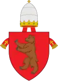 Papal coats of arms are the personal coat of arms of popes of the Catholic Church. These have been a tradition since the Late Middle Ages, and has displayed his own, initially that of his family, and thus not unique to himself alone, but in some cases composed by him with symbols referring to his past or his aspirations.[1][2][3] This personal coat of arms coexists with that of the Holy See.