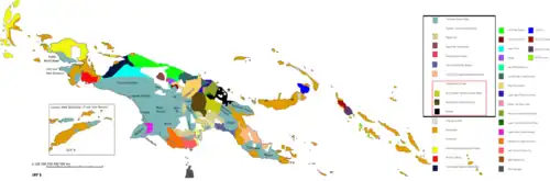 The Papuan languages are the non-Austronesian languages spoken on the western Pacific island of New Guinea, as well as neighbouring islands in Eastern Indonesia, Solomon Islands, and East Timor.[1] It is a strictly geographical grouping, and does not imply a genetic relationship.