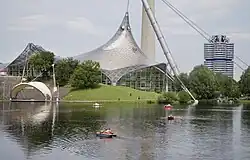 German architect Frei Otto also experimented with non-digital parametric processes, using soap bubbles to find optimal shapes of tensegrity structures such as in the Munich Olympic Stadium, designed for the 1972 Summer Olympics in Munich.[12]