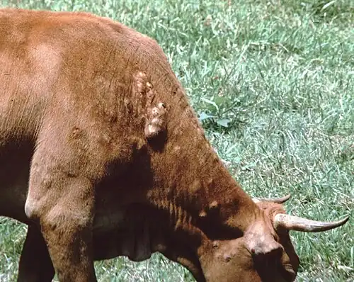 35. ^ Guglielmone, A.A., et al. (1999) Skin lesions and cattle hide damage from Haematobia irritans infestations. Medical and Veterinary Entomology, 13: 324-329. doi:10.1046/j.1365-2915.1999.00167.x.