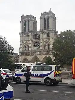 During the early afternoon on 3 October 2019, a police employee stabbed six colleagues at the Prefecture of Police on the Île de la Cité in central Paris, killing three police officers and one member of the support staff as well as injuring two others.[4][5] Police opened fire, killing the attacker in the building's main courtyard.[6][7][8] The attack came a day after police went on strike across France over increasing violence towards officers.[9]