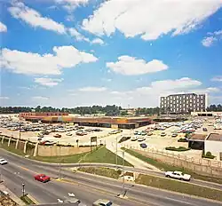 Upon opening in 1960, Park Plaza was considered the first major shopping center in West Little Rock (now called Midtown, and today's West Little Rock is further west) and was eventually blamed for the exodus of retail stores from downtown Little Rock. Park Plaza Shopping Center, as it was originally named, consisted of retail stores, a grocery store, a bowling alley, and a cafeteria.[1] In 1963, Gus Blass, a defunct downtown Little Rock department store founded in the 1860s, announced plans to build a store at Park Plaza.[5] Its Park Plaza location opened in 1965, becoming the first large store from downtown Little Rock with a presence at Park Plaza.[1][5] The site of the Gus Blass downtown location still stands today and is registered on the National Register of Historic Places.[6] In 1964, Gus Blass was sold to Little Rock-based Dillard's; in 1967, the Park Plaza Gus Blass was rebranded as Pfeifer-Blass, and in 1974, it finally became Dillard's.[7] Dillard's remains at Park Plaza today with two separate stores at the mall: Dillard's East and Dillard's West; the two locations serve as company flagship locations.[1]