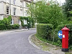 North side of the main Park Town crescent, with a traditional Victorian Penfold-style hexagonal pillar box.