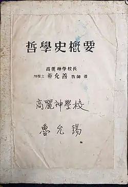 1. ^ 김, 승태. "박윤선 (朴允善)". Encyclopedia of Korean Culture (in Korean). Academy of Korean Studies. Retrieved 24 March 2024.