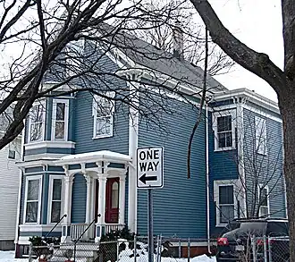 The Parker–Burnett House is a historic house in Somerville, Massachusetts. The Italianate style 2+1⁄2-story wood-frame house was built c. 1873–74 by Silas Parker, a builder who sold the completed house to James Burnett, a blacksmith. The house has paired brackets in the eaves and gables, which are matched by brackets along the cornice lines of the two-story projecting bay window. The front porch has more ornate brackets, and is supported by square pillars resting on paneled piers and capped by Ionic tops.[2]