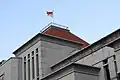 The Parliament House is a public building and a cultural landmark in Singapore. It houses the Parliament of Singapore, and is located in the Civic District of the Downtown Core within the Central Area. Within its vicinity is Raffles Place, which lies across from the Parliament House from the Singapore River, and the Supreme Court's building across the road. The building was designed to represent a contemporary architectural expression of stateliness and authority. The prism-shaped top, designed by President Ong Teng Cheong, was similarly a modernist take on the traditional dome.