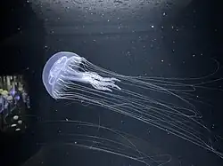 Parumbrosa is a genus of jellyfish in the family Ulmaridae that contains one species, Parumbrosa polylobata.[1] It lives in the northwest pacific of Japan in pelagic and subtropical marine environments. It has a wide and flat disk that can grow up to a maximum of 16 cm (6.3 in) wide. The tentacles are relatively long and are colorless.[2]