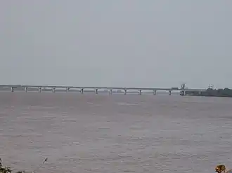 The Paso de los Libres–Uruguaiana International Bridge is a combined road and railroad bridge that joins Argentina and Brazil across the Uruguay River, running between Paso de los Libres, Corrientes Province, Argentina, and Uruguaiana, Rio Grande do Sul, Brazil. It measures 1,419 metres (4,656 ft) in length.