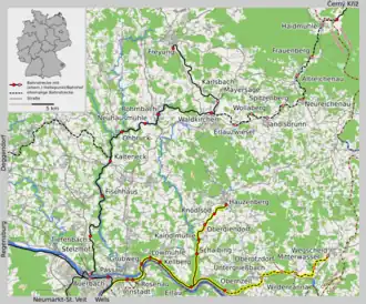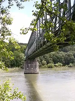 The Passau–Erlau–Hauzenberg railway is a single-tracked branch line in the Regensburg railway division with a branch to Erlau–Obernzell(–Wegscheid), which was partially operated as rack railway using the Strub rack system.