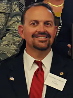 Evans was born October 26, 1960, in Red Bud, Illinois.[1] Evans has worked in Southwestern Illinois as an attorney for nearly 20 years, and has previously served as the Zoning Hearing Officer for the cities of O'Fallon and New Baden, as well as serving on Metro-East Parks and Recreation District Board for 10 years. Evans was the President of the O’Fallon Chamber of Commerce from 2016-2018.[2]