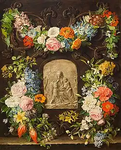 Pauline Freiin von Koudelka was born on 8 September 1806 in Vienna, capital of the Austrian Empire. She was the daughter of Lieutenant Field Marshal Joseph Freiherr von Koudelka and Katharina Freiin Wetzlar von Blankenstern. Her father was an accomplished artist in retirement and encouraged her artistic talents.[2] She trained under Franz Xaver Petter in Vienna and Cornelis van Spaedonck, Pierre Joseph Redouté and Jan Frans van Dael in Paris. Her flower paintings were often of arrangements on flat surfaces and adorning images of Catholic saints or Madonnas.[1]