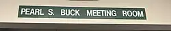 Sign for the Pearl S. Buck Meeting Room, photographed outside of the Doylestown Branch of Bucks County Free Library in 2025.