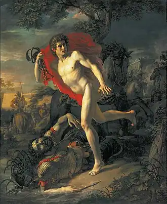 The heroic deed of the young Kyivite during the siege of Kyiv by the Pechenegs in 968. Andrey Ivanovich Ivanov.[50]