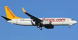 The aircraft was a Boeing 737-86J[a] registered as TC-IZK, with serial number 37742. It was 11 years old at the time of the crash, having first flown in January 2009. The plane had previously been operated by the now-defunct German airline Air Berlin before being acquired by Pegasus in May 2016.[4] Prior to the crash, Pegasus was scheduled to withdraw this aircraft once leasing expired, as the airline plans to move to an all-Airbus fleet in the future.[5][6]