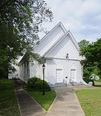 Pelzer Presbyterian Church is a historic Presbyterian church located at 13 Lebby Street in Pelzer, Anderson County, South Carolina. It was built in 1896, and is a rectangular Akron Plan church building with a gable front roof and sheathed in weatherboard. It features impressive stained and leaded glass windows and a Gothic arch entrance. A two-story, five-sided Sunday school classroom addition was built in 1905.[2][3] It was added to the National Register in 1993.