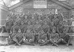 By the end of August 1914 the 1/1st SWMB including the 1/1st Pembroke Yeomanry joined the 1st Mounted Division.[5][37][48][33][57][58][59] In November 1915, the brigade was dismounted. It was replaced in 1st Mounted Division by 2/1st Eastern Mounted Brigade when it departed for Egypt.[33] With the brigade, the regiment was posted to Egypt in March 1916. On arrival a detachment from the regiment formed part of the Imperial Camel Corps. On 20 March, South Wales Mounted Brigade was absorbed into the 4th Dismounted Brigade.[7][37][48][33][60]