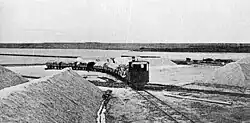 All the company's assets were acquired by entrepreneur Alejandro Ferro, although the lack of documents or titles that proved his rights over the line made the railway was closed in 1920.[2] The Government of Chubut expropriated the railway line area in 1958.[4] A report by United States Department of Commerce revealed that the railway was deficient since 1916 although financial problems had begun in 1904. The report also said that the harvesting of salt had ceased before Ferro acquired the company. The inhabitants of Puerto Pirámides decreased until the 1970s when tourism industry rejuvenated the city.[7][8]