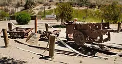 Remains of a goods wagon exhibited in Puerto Pirámides (2014).