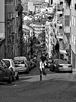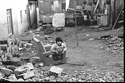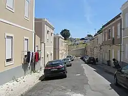 In November 2001 Curraleira neighbourhood was demolished. It was a shanty town hosting around 560 families until the late 1990s whose first inhabitants arrived in the 1930s but which experienced significant growth only after 1960, when a source of drinking water was installed in the neighbourhood.[57][58][59][39][60][61] According to 1992 estimates, there were still 2,500 people living in the shanty town, occupying around 800 sheds. The slum suffered from lack of most basic amenities such as tap water or access to electricity and many children were not enrolled in any educational system. There was also a dependency on social assistance, often insufficient for basic needs.[62][63][64][65] The shanty was also a major hub for drug smuggling in Lisbon, a city dealing with a surge in heroin and cocaine consumption.[66][67][68] Comprising makeshift dwellings of wood, zinc, and masonry, lacking basic amenities, the area was classified as Priority Neighborhoods and Intervention Areas by the Lisbon City Council and were part of the EU's USER program for urban regeneration. A fire in July 2001 destroyed four shacks and underlined the importance of an immediate relocation of the residents.[69] Most families were relocated to public housing projects nearby, notably the neighbourhood of Quinta do Lavrado composed of 263 apartments over 10 buildings, completed in 2001. Many of the apartments are reportedly overcrowded, hosting around 1,000 people as of 2023.[70][53] Some residents were also relocated to social housing in Picheleira[71][72] Starting from 2018, many charitable foundations as well as associations established by local inhabitants (e.g. Geração com Futuro) has sponsored the renewal of the neighbourhood, trying to separate the name from the social stigma it carried in the 1990s.[39][73][74][75][76][77][78][79]