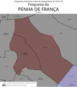 Penha de França area before and after the 2012 Portuguese administrative reform