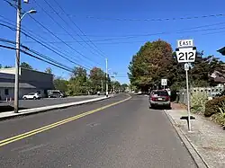 The portion of PA 212 between Quakertown and Richlandtown dates back to 1854, when the Richland Turnpike or Plank Road Company was created to build a turnpike linking the Doylestown Road (present-day PA 313) to the Hellertown Road (present-day PA 412). This road existed as an unimproved road into the 20th century.[4] The present-day alignment of PA 212 was not legislated as a state highway in 1911.[5] PA 212 was designated by 1927 to run from US 309 (now PA 309) and PA 312 (now PA 663) in Quakertown northeast to US 611 (now PA 611) in Riegelsville, heading east through Quakertown on Broad Street before following its current alignment. At this time, the route was paved from Quakertown to a short distance north of Richlandtown.[6] By 1930, the route was paved from north of Richlandtown to past the east end of the PA 412 concurrency. The easternmost portion of the route leading to US 611 south of Riegelsville was under construction at this time.[7] The portion of PA 212 under construction was completed by 1940.[8] By 1971, PA 313 was extended west to run concurrent with PA 212 on Broad Street in Quakertown.[9] The western terminus of PA 212 was cut back to its current location at PA 313 by 1991, removing the concurrency with PA 313.[10]