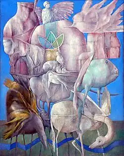 Little by little, her singular style, easy to recognize even though her work was always evolving, took shape. With remarkable imagination, she filled her works with legendary and fantastic characters, amazing oneiric landscapes and, as if in a guide to the interpretation of dreams, the titles she presented to the public that were both enigmatic and enlightening, as of an invitation to try to decipher this personal and magical world.