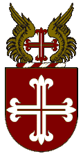 The coat of arms of Saint Nuno Álvares Pereira. The cross, which is a cross flory voided, is a common charge found in the coats of arms of Pereira families, as are the red and white colours.